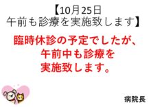 【10月25日 午前も診療を実施致します】 臨時休診の予定でしたが、午前中も診療を実施致します。 病院長 Luluどうぶつ病院 Tel:045-500-9472 神奈川県横浜市青葉区美しが丘1 …